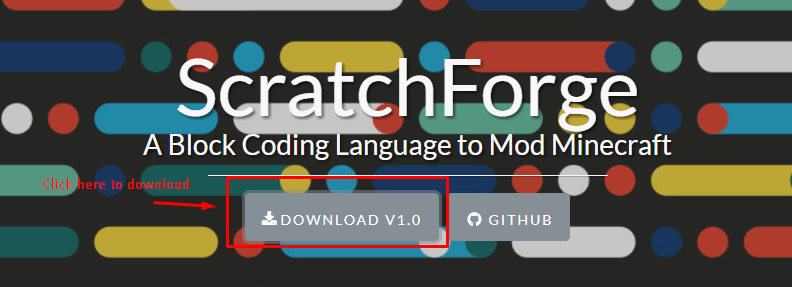 3) Click the download button. The number after "v" may be different than 1.0 -- that is OK. (This is the ScratchForge version number)