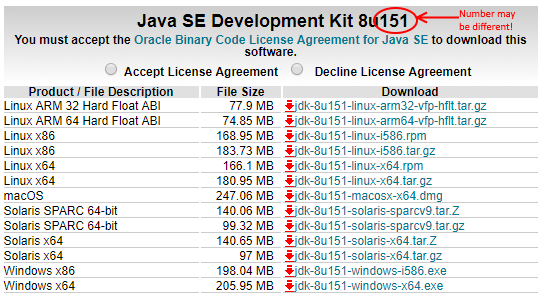 2) Look at the first section, which should look like this. The number after "8u" may be different than 151 -- that is OK.