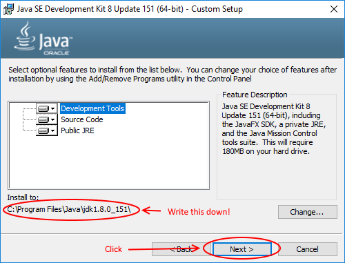 18) In the bottom box, type the JDK install directory you wrote down earlier. Be sure to use backward slashes, but do not type a backward slash at the very end.