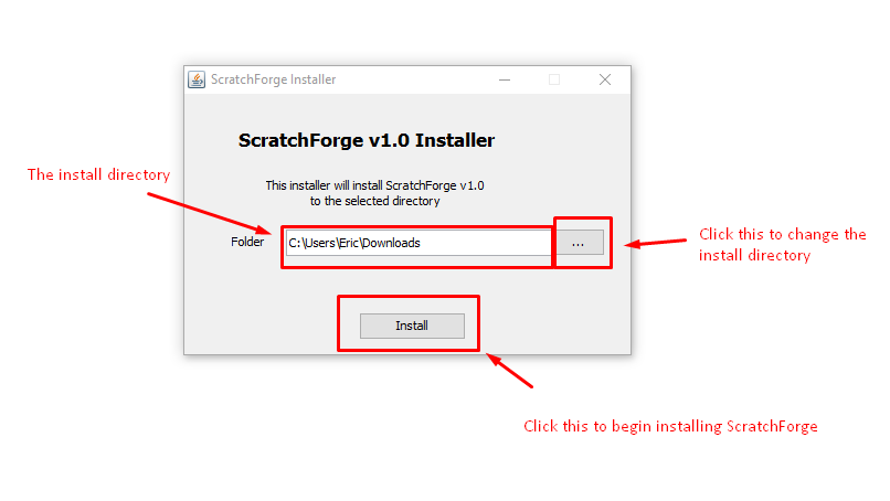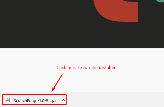 3) Click the download button. The number after "v" may be different than 1.0 -- that is OK. (This is the ScratchForge version number)