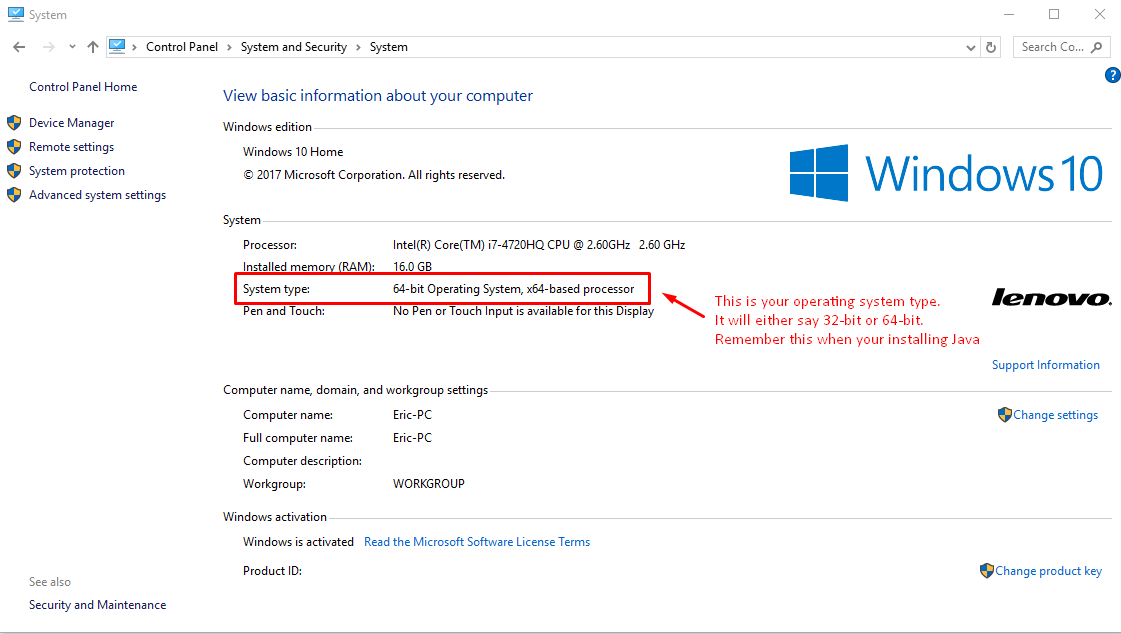 3) Here is where you will look to see if you have 32bit or 64bit windows.